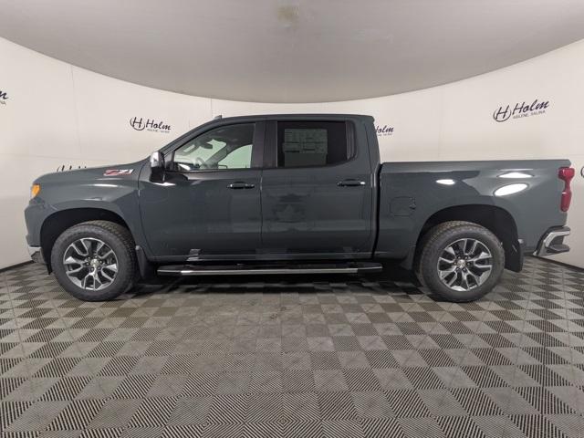Cypress Gray 2025 Chevrolet Silverado 1500 LT Silverado 1500 LT LT1, 3.0L I6, 8-Speed Automatic, 4WD, Cypress Gray, Jet Black Cloth, 10-Way Power Driver Seat w/Lumbar, 120-Volt Bed Mounted Power Outlet, 120-Volt Interior Power Outlet, All-Weather Floor Liner (LPO) (AAK), Chevytec Spray-On Black Bedliner, Convenience Package, Dual Exhaust w/Polished Outlets, Dual Rear USB Ports (Charge Only), Dual-Zone Automatic Climate Control, Electric Rear-Window Defogger, Heated Driver & Front Outboard Passenger Seats, Heated Steering Wheel, Heavy-Duty Air Filter, Hill Descent Control, Hitch Guidance, Keyless Open & Start, LED Cargo Area Lighting, Manual Tilt/Telescoping Steering Column, Off-Road Suspension, Protection Package, Rear Wheelhouse Liners, Remote Start Package, Remote Vehicle Starter System, Standard Suspension Package, Theft Deterrent System (Unauthorized Entry), Trailering Package, Wheels: 18" x 8.5" Bright Silver Painted Aluminum, Wrapped Steering Wheel, Z71 Off-Road & Protection Package, Z71 Off-Road Package.