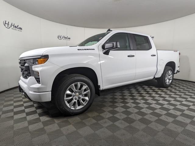 Summit White 2026 Chevrolet Silverado 1500 Custom Silverado 1500 Custom, 4D Crew Cab, 2.7L I4 Turbocharged DOHC 16V LEV3-SULEV30 310hp, 8-Speed Automatic, 4WD, Summit White, Jet Black Cloth, 10-Way Power Driver Seat w/Lumbar, Black Name Plates (LPO), Custom Convenience Package, Custom Value Package, Dark Essentials Package (LPO), Electric Rear-Window Defogger, EZ Lift Power Lock & Release Tailgate, High Capacity Suspension Package, Hitch Guidance, LED Cargo Area Lighting, Remote Vehicle Starter System, Theft Deterrent System (Unauthorized Entry), Trailering Package.