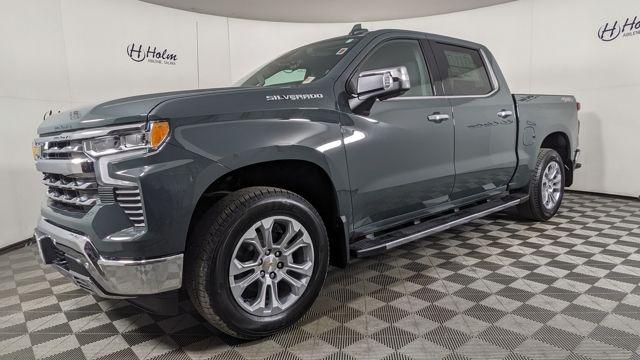 Cypress Gray 2026 Chevrolet Silverado 1500 LTZ Silverado 1500 LTZ, 4D Crew Cab, EcoTec3 6.2L V8, 10-Speed Automatic, 4WD, Cypress Gray, Jet Black Leather, 15" Diagonal Multicolor Head-Up Display, 2 USB Data Ports, 2nd Row Heated Outboard Seats, Adaptive Cruise Control, Bed View Camera, Floor Mounted Center Console, HD Surround Vision, High Capacity Suspension Package, Hitch Guidance, LTZ Convenience Package, LTZ Convenience Package II, LTZ Plus Package, LTZ Premium Package, Perimeter Lighting, Power Sliding Rear Window w/Rear Defogger, Power Sunroof, Power Tilt & Telescoping Steering Column, Premium Bose 7-Speaker Sound System, Rear Camera Mirror, Rear Cross Traffic Braking, Rear Pedestrian Alert, Safety Alert Seat, Safety Package, Technology Package, Trailer Camera Provisions, Trailer Side Blind Zone Alert, Trailering Package, Ultrasonic Front & Rear Park Assist, Universal Home Remote, Up-Level Rear Seat w/Storage Package, Ventilated Driver & Front Passenger Seats, Wireless Charging.
