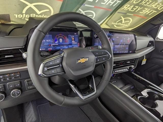 Sterling Gray Metallic 2026 Chevrolet Tahoe Premier Tahoe Premier, 3.0L V8 Diesel Turbocharged OHV 16V LEV3-ULEV50 355hp, 10-Speed Automatic with Overdrive, 4WD, Sterling Gray Metallic, Jet Black Leather, 15" Diagonal Multi-Color Head-Up Display, 2-Speed Active Electronic AutoTrac Transfer Case, Advanced Security Package, Advanced Trailering Package, AutoSense Hands-Free Power Liftgate, Blind Zone Steering Assist w/Trailering, Bose 10-Speaker Centerpoint Surround Audio Sys Ft, Dual-Pane Power Panoramic Sunroof, Glass Breakage Sensor, Hill Descent Control, Hitch View w/Pan/Zoom Image Adjustment, Inside Rearview Auto-Dimming Rear Camera Mirror, Integrated Trailer Brake Controller, Key Card, Magnetic Ride Control Suspension, Max Trailering Package, Memory seat, Navigation system: Google built-in compatibility (select service plan required, terms and limitations apply), Power Liftgate, Radio: 17.7" Diagonal Advanced Color LCD Display, Rear Seat Media System, Remote keyless entry, Smart Trailer Integration Indicator, Technology & Entertainment Package, Technology Package, Theft-Deterrent Alarm System, Vehicle Inclination Sensor, Vehicle Interior Movement Sensor.