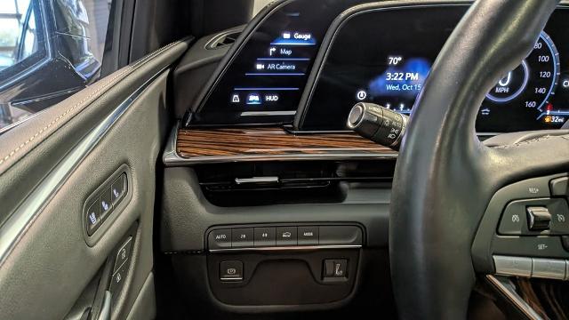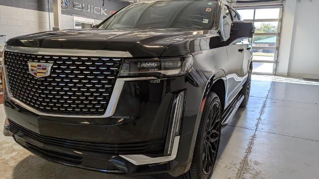 One Owner, Local Trade In, Non Smoker, Four Complimentary Oil Change and Tire Rotation, Complimentary 12 Month Collision Deductible Waiver (up to $500), Escalade Premium Luxury, 4D Sport Utility, 6.2L V8, 10-Speed Automatic, AWD, Black Raven, Black Leather, Adaptive Cruise Control, AKG Studio 19-Speaker Audio System, Automatic Seat Belt Tightening, Door Lock & Latch Shields, Enhanced Automatic Emergency Braking, Enhanced Automatic Parking Assist, Glass Breakage Sensor, Heated & Ventilated Driver & Front Passenger Seats, Lane Change Alert w/Side Blind Zone Alert, Mechanical Limited-Slip Differential, Power Panoramic Tilt-Sliding Sunroof, Preferred Equipment Group 1SB, Rear Camera Mirror, Rear Camera Mirror Washer, Rear Cross Traffic Alert, Reconfigurable Full-Color Head-Up Display, Reverse Automatic Braking, Running Board Assist Steps, Theft-Deterrent Alarm System, Vehicle Inclination Sensor, Vehicle Interior Movement Sensor.