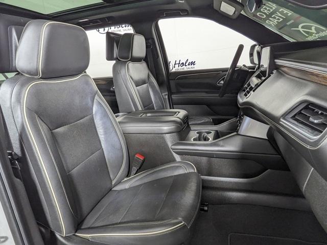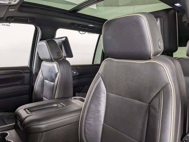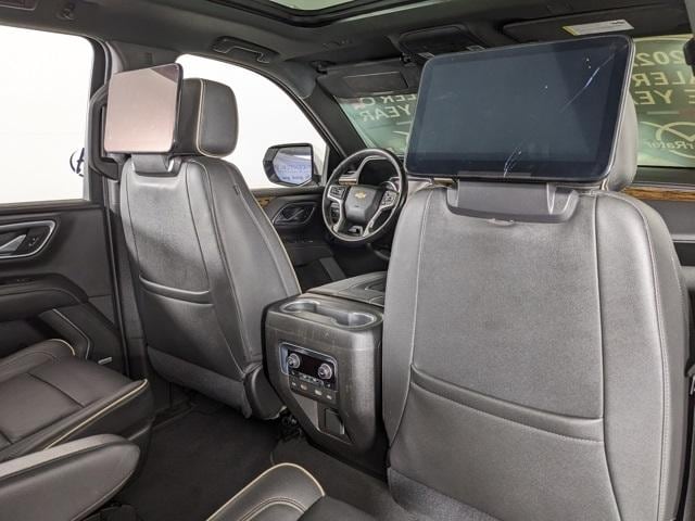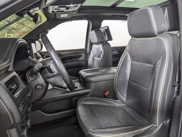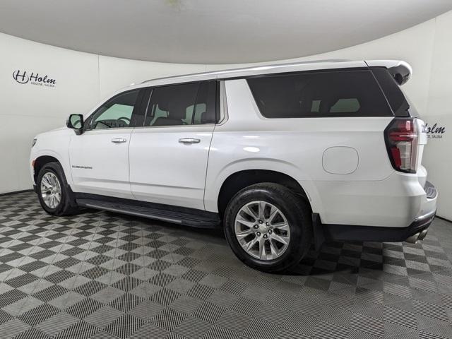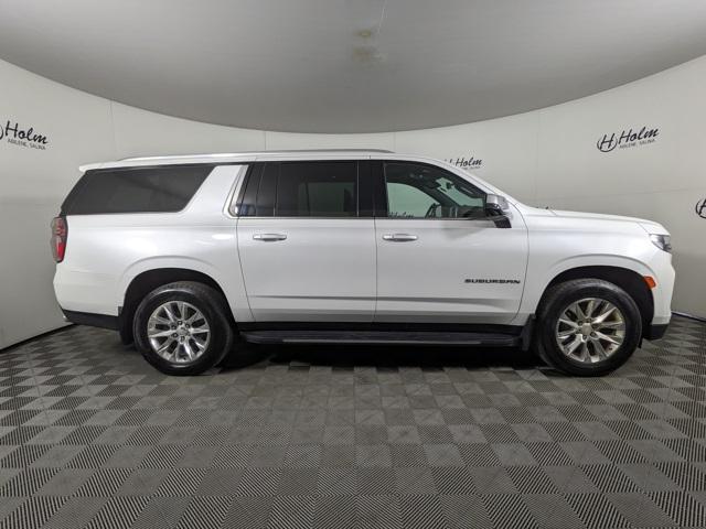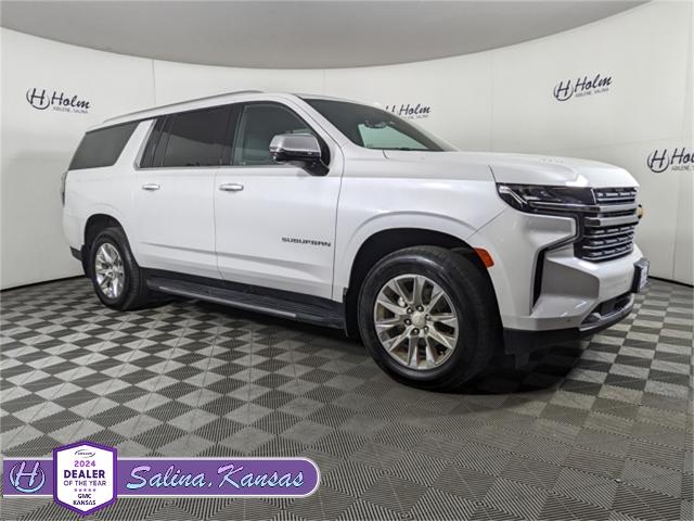 3rd Row Seating, Android Auto, Backup Camera, Apple CarPlay, Blindspot Monitoring, Bluetooth, Dual Climate, Must See, Heated Seats, Cooled Seats, Memory Seats, Leather, Sunroof/Moonroof, Front Parking Sensors, Rear Parking Sensors, Premium Sound Package, Remote Start, Tow Package, Clean Vehicle History, Heated Steering Wheel, One Owner, Non Smoker, Four Complimentary Oil Changes and Tire Rotation, 2nd Row Heated Seats, Power Lift Gate, Fixed Running Boards, 4WD, Suburban Premier, 4D Sport Utility, EcoTec3 5.3L V8, 4WD, 12-Way Power Driver & Passenger Seat Adjusters, 15" Diagonal Multi-Color Head-Up Display, 1st & 2nd Row Color-Keyed Carpeted Floor Mats, 2 USB Data Ports, 2-Speed Active Electronic AutoTrac Transfer Case, 20" x 9" Polished Aluminum Wheels, 3rd Row 60/40 Power-Folding Split-Bench, Adaptive Cruise Control, Advanced Trailering Package, Advanced Trailering System, Apple CarPlay/Android Auto, Auto-Dimming Inside Rear-View Mirror, Automatic Heated Steering Wheel, Bose 10-Speaker Surround w/CenterPoint, Bright Front & Rear Door Sill Plates, Chrome Door Handles w/Body-Color Strip, Chrome Mirror Caps, Color-Keyed Carpeting Floor Covering, Driver & Front Outboard Passenger Airbags, Dual Exhaust System, Dual-Pane Power Panoramic Sunroof, Enhanced Automatic Emergency Braking, Enhanced Display & Alert Package, Enhanced Driver Information Center, Extra Capacity Cooling System, Floor Console w/Storage Area, Front & Rear Park Assist, Hands-Free Rear Power Programmable Liftgate, HD Radio, HD Surround Vision, Heated & Ventilated Driver & Front Passenger Seats, Heated 2nd Row Outboard Seats, Heated Driver & Front Passenger Seats, Heated steering wheel, Hill Descent Control, Hitch Guidance w/Hitch View, Infotainment Display, Inside Rearview Auto-Dimming Rear Camera Mirror, Integrated Trailer Brake Controller, Lane Change Alert w/Side Blind Zone Alert, Lane Keep Assist w/Lane Departure Warning, Leather-Wrapped Steering Wheel, LED Daytime Running Lamps, Max Trailering Package, Memory Settings, Navigation System, Outside Heated Power-Adjustable Mirrors, Power Liftgate, Power Release 2nd Row Bucket Seats, Power Tilt & Telescopic Steering Column, Preferred Equipment Group 1LZ, Premium Package, Rear Camera Mirror Washer, Rear Cross Traffic Alert, Rear Pedestrian Alert, Remote Start, Safety Alert Seat, SiriusXM Radio w/360L, Trailer Side Blind Zone Alert, Universal Home Remote.