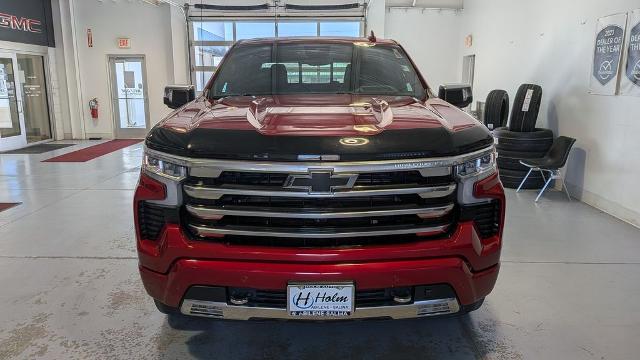 Must See, Clean Vehicle History Report, All Service Done at Holm Auto, One Owner, Local Trade In, Four Complimentary Oil Change and Tire Rotation, Complimentary 12 Month Collision Deductible Waiver (up to $500), Silverado 1500 High Country, 4D Crew Cab, 3.0L I6, 10-Speed Automatic, 4WD, Radiant Red Tintcoat, Jet Black Leather, 10-Way Power Driver Seat w/Lumbar, 10-Way Power Passenger Seat Adjuster w/Lumbar, 12.3" Multicolor Reconfigurable Digital Display, 120-Volt Bed Mounted Power Outlet, 120-Volt Instrument Panel Power Outlet, 15" Diagonal Multicolor Head-Up Display, 2 USB Data Ports, 2nd Row Heated Outboard Seats, Adaptive Cruise Control, All-Weather Floor Liner (LPO), Auto-Dimming Inside Rear-View Mirror, Auto-Locking Rear Differential, Bed View Camera, Bluetooth For Phone, Body-Color Painted Mirror Caps, Chevrolet Connected Access Capable, Chevytec Spray-On Black Bedliner, Chrome Assist Steps, Chrome Recovery Hooks, Color-Keyed Carpeting Floor Covering, Compass, Deep-Tinted Glass, Driver Memory, Dual Exhaust w/Polished Outlets, Dual Rear USB Ports (Charge Only), Electric Rear-Window Defogger, Electrical Steering Column Lock, Electronic Cruise Control, Floor Mounted Center Console, Front Carpeted Floor Mats, Front LED Fog Lamps, Front Rainsensing Wipers, HD Surround Vision, Heated Driver & Front Outboard Passenger Seats, Heated Steering Wheel, High Capacity Suspension Package, High Country Premium Package, Hitch Guidance, Hitch Guidance w/Hitch View, Integrated Trailer Brake Controller, Keyless Open & Start, LED Cargo Area Lighting, OnStar & Chevrolet Connected Services Capable, Outside Heated Power-Adjustable Mirrors, Perimeter Lighting, Power Front Passenger Windows w/Express Up/Down, Power Front Windows w/Driver Express Up/Down, Power Rear Windows w/Express Down, Power Sliding Rear Window w/Rear Defogger, Power Sunroof, Power Tailgate, Power Tilt & Telescoping Steering Column, Preferred Equipment Group 3LZ, Premium Bose 7-Speaker Sound System, Rear Camera Mirror, Rear Carpeted Floor Mats, Rear Cross Traffic Alert-Braking, Rear Pedestrian Alert, Rear Wheelhouse Liners, Remote Vehicle Starter System, Safety Alert Seat, SiriusXM w/360L, Standard Tailgate, Steering Wheel Audio Controls, Technology Package, Theft Deterrent System (Unauthorized Entry), Trailer Camera Provisions, Trailer Side Blind Zone Alert, Trailering App, Trailering Package, Ultrasonic Front & Rear Park Assist, Universal Home Remote, Up-Level Rear Seat w/Storage Package, Ventilated Driver & Front Passenger Seats, Wheels: 22" x 9" Painted Aluminum, Wi-Fi Hot Spot Capable, Wireless Charging, Wireless Phone Projection, Wrapped Steering Wheel.