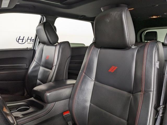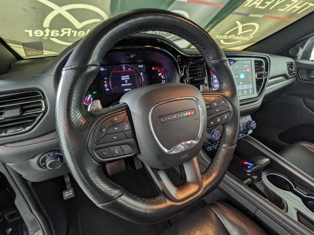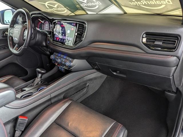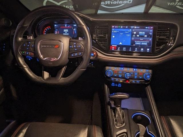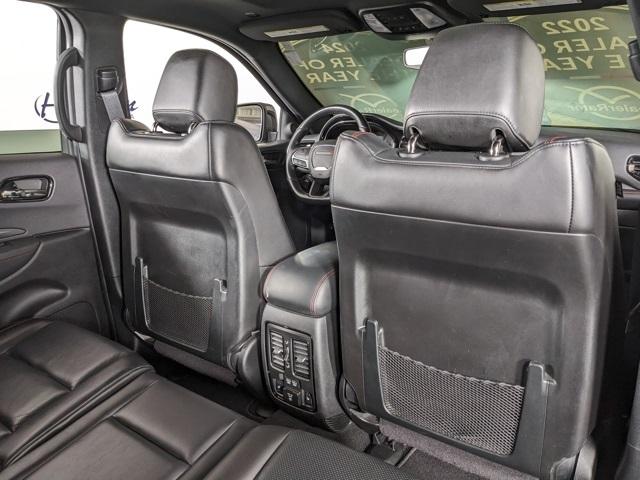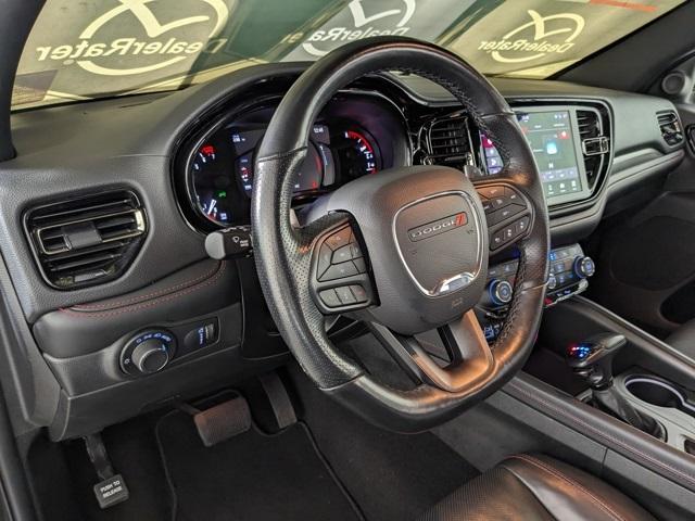 3rd Row Seating, Adaptive Cruise Control, Android Auto, Backup Camera, Apple CarPlay, Blindspot Monitoring, Bluetooth, Dual Climate, Must See, Heated Seats, Cooled Seats, Leather, Sunroof/Moonroof, Rear Parking Sensors, Remote Start, Clean Vehicle History, Heated Steering Wheel, One Owner, Non Smoker, Four Complimentary Oil Changes and Tire Rotation, Power Lift Gate, AWD, Durango GT Plus, 4D Sport Utility, AWD, 1-Year Trial (Registration Required), 10.1" Touchscreen Display, 115V Auxiliary Power Outlet, 180 Amp Alternator, 4G LTE Wi-Fi Hot Spot, 7 & 4 Pin Wiring Harness, Adaptive Cruise Control w/Stop, Apple CarPlay, Auto-Dimming Exterior Driver Mirror, Black Roof Rails, Blind Spot w/Trailer Detection, Class IV Receiver Hitch, Connected Travel & Traffic Services, Disassociated Touchscreen Display, Dual Remote USB Port - Charge Only, Exterior Mirrors w/Heating Element, Exterior Mirrors w/Memory, Exterior Mirrors w/Supplemental Signals, Floor Console w/Leather Armrest, For Details Visit DriveUconnect.com, Full Speed Forward Collision Warning Plus, Global Telematics Box Module (TBM), Gloss Black Exterior Mirrors, Google Android Auto, GPS Antenna Input, GPS Navigation, HD Radio, Heated Second Row Seats, Heavy-Duty Engine Cooling, Integrated Center Stack Radio, Integrated Roof Rail Crossbars, Integrated Voice Command w/Bluetooth, Leather Trimmed Bucket Seats, Leather Wrapped Door Panels, LED Auxiliary Low Beam & Turn Signal, Power 6x9 Multi-Function Foldaway Mirrors, Power 8-Way Driver Memory 8-Way Passenger Seats, Power Driver/Passenger 4-Way Lumbar Adjust, Power Sunroof, Power Tilt & Telescopic Steering Column, Quick Order Package 2BG GT Plus, Radio: Uconnect 5 Nav w/10.1" Display, Radio/Driver Seat/Mirrors Memory, Rear Load Leveling Suspension, Red Accent Stitching, SiriusXM Guardian - Included Trial (B), SiriusXM w/360L, Trailer Brake Control, USB Host Flip, Ventilated Front Seats. Odometer is 5199 miles below market average!