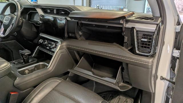 Clean Vehicle History Report, One Owner, Local Trade In, Non Smoker, Four Complimentary Oil Change and Tire Rotation, Complimentary 12 Month Collision Deductible Waiver (up to $500), Sierra 1500 Denali, 4D Crew Cab, EcoTec3 5.3L V8, 10-Speed Automatic, 4WD, Summit White, Jet Black Leather, 120-Volt Bed Mounted Power Outlet, 120-Volt Instrument Panel Power Outlet, 170 Amp Alternator, 2 Charge/Data USB Ports Inside Center Console, 2 Type-C Charge-Only Rear USB Ports, 2 USB Ports, Adaptive Cruise Control, Auto-Locking Rear Differential, Auxiliary External Transmission Oil Cooler, Bed View Camera, Chrome Header w/Signature Denali Chrome Grille, Chrome Recovery Hooks, Chrome Wheel To Wheel Assist Steps, Color-Keyed Carpeting Floor Covering, Compass, Deep-Tinted Glass, Denali Reserve Package, Electric Rear-Window Defogger, Electrical Steering Column Lock, Floor-Mounted Center Console, Front Rainsensing Wipers, GMC Connected Access Capable, GMC MultiPro Power Steps, HD Surround Vision, Heated 2nd Row Outboard Seats, Heated Driver & Front Outboard Passenger Seating, Heavy-Duty Air Filter, Hill Descent Control, Hitch Guidance, Hitch Guidance w/Hitch View, In-Vehicle Trailering App, Integrated Trailer Brake Controller, Keyless Open & Start, LED Cargo Area Lighting, Multicolor 15" Diagonal Head-Up Display, OnStar & GMC Connected Services Capable, Perimeter Lighting, Power Door Locks, Power Front Passenger Windows w/Express Up/Down, Power Front Windows w/Driver Express Up/Down, Power Rake & Telescoping Steering Column, Power Rear Windows w/Express Down, Power Sliding Rear Window w/Rear Defogger, Power Sunroof, Preferred Equipment Group 5SA, Premium Bose 7-Speaker Sound System, Push Button Start, Rear Camera Mirror, Rear Cross Traffic Braking, Rear Pedestrian Detection, Rear Wheelhouse Liners, Remote Vehicle Starter System, SiriusXM w/360L, Spray-On Pickup Bed Liner w/Denali Logo, Steering Wheel Audio Controls, Technology Package, Theft Deterrent System (Unauthorized Entry), Trailer Camera Provisions, Trailer Side Blind Zone Alert, Trailering Package, Ultrasonic Front & Rear Park Assist, Universal Home Remote, Ventilated Driver & Front Passenger Seats, Wheel Locks (Set of 4) (LPO), Wheels: 22" x 9" Painted Aluminum, Wi-Fi Hotspot Capable, Wireless Charging, Wireless Phone Projection.