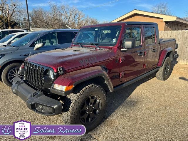 Must See, Clean Vehicle History Report, Local Trade In, Non Smoker, Four Complimentary Oil Change and Tire Rotation, Complimentary 12 Month Collision Deductible Waiver (up to $500), Gladiator Willys, 4D Crew Cab, 3.6L V6 24V VVT, 8-Speed Automatic, 4WD, Snazzberry Pearlcoat, Black Cloth, 115V Auxiliary Power Outlet, 220 Amp Alternator, 240 Amp Alternator, 4-Wheel Drive Decal, 400W Inverter, 8.4" Radio & Premium Audio Group, 8.4" Touchscreen Display, Air Conditioning w/Auto Temperature Control, Alpine Premium Audio System, Anti-Spin Differential Rear Axle, Apple CarPlay, Auto-Dimming Rear-View Mirror, Automatic Headlamps, Black 3-Piece Hard Top, Black Grille, Black Trail Rated Badge, Blind Spot & Cross Path Detection, Body Color Fender Flares (2-Piece), Bridgestone Brand Tires, Class IV Hitch Receiver, Cluster 7.0" TFT Color Display, Cold Weather Group, Console Bin Task Light, Convenience Group, Daytime Running Lamp System, Deep Tint Sunscreen Windows, Emergency/Assistance Call, For Details, Visit DriveUconnect.com, For More Info, Call 800-643-2112, Freedom Panel Storage Bag, Front 1-Touch Down Power Windows, Front Heavy Duty Red Accent Shock Absorbers, Google Android Auto, GPS Antenna Input, GPS Navigation, HD Radio, Heated Front Seats, Heated Steering Wheel, Heavy-Duty Engine Cooling, Integrated Center Stack Radio, Integrated Voice Command w/Bluetooth, Leather Wrapped Steering Wheel, LED Taillamps, Media Hub w/2 Charge Only USBs, Mold In Color Bumper w/Gloss Black, MOPAR All-Weather Floor Mats, Off-Road Info Pages, ParkSense Rear Park Assist System, Power Heated Mirrors, Power Tailgate Lock, Protection Sill Rails, Quick Order Package 24W Willys, Radio: Uconnect 4 w/7" Display, Radio: Uconnect 4C Nav w/8.4" Display, Rear Heavy Duty Red Accent Shock Absorbers, Rear Sliding Window, Rear Window Defroster, Remote Keyless Entry, Safety Group, Security Alarm, SiriusXM Radio Service, SiriusXM Satellite Radio, SiriusXM Traffic Plus, SiriusXM Travel Link, Speed Sensitive Power Locks, Sun Visors w/Illuminated Vanity Mirrors, Technology Group, Trailer Hitch Zoom, Trailer Tow Package, Universal Garage Door Opener, USB Host Flip, Wheels: 17" x 7.5" Black Aluminum w/Gray Pad, Willys, Willys Hood Decal.